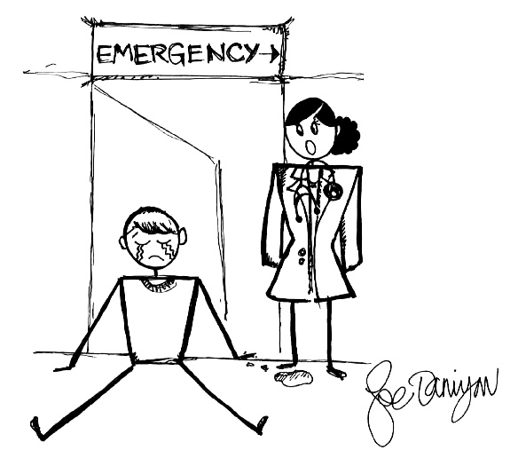 A man stood impatiently in the doorway of the room next to the girl with the fingertip infection. “Can SOMEONEEEE COMEEE DISCHARGEEEE MEEEE,” he shouted with slurred words, teetering a bit on his feet. “I’m going to drive HOMEEEE.” He was a 27-year-old male who had driven himself to the emergency room for a headache. As it turned out, he was drunk off his rocker. After giving him IV fluids, I had been spending the last few hours going into his room at different intervals to convince him to stay in the ER until he sobered up.